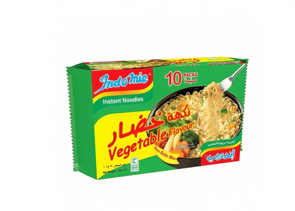 اندومي نكهة الخضار، طعام سريع التحضير (عبوة 10 حبات)، 75 جرام لكل حبة.