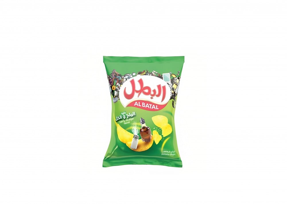 شيبس البطل ملح وخل 135 جم - رقائق بطاطس بنكهة الملح والخل الكلاسيكية. لذة مقرمشة تتماشى مع جميع الأوقات.