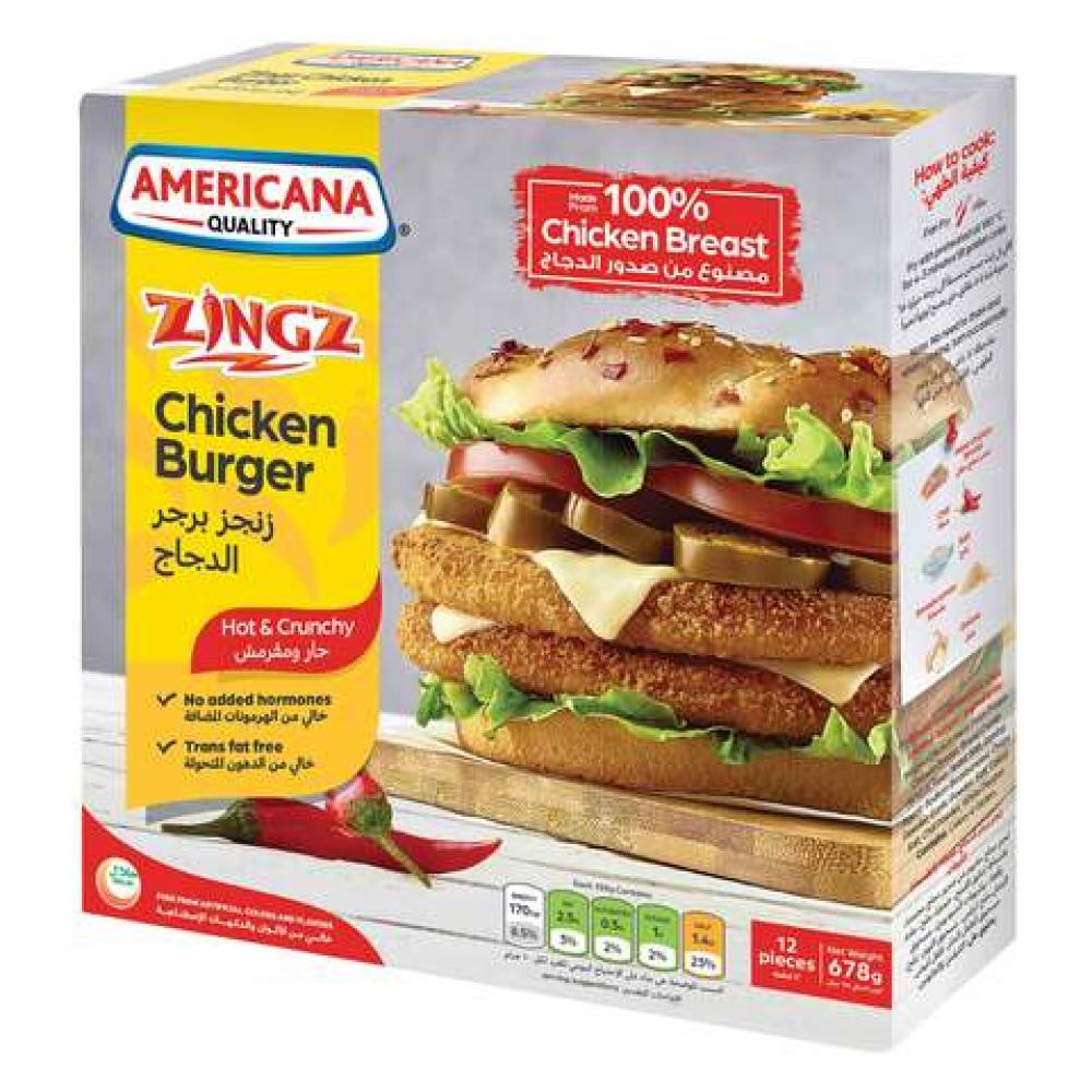 زنجر برجر الدجاج الحار من امريكانا، مقرمش ولذيذ، 678 جرام (12 قطعة).