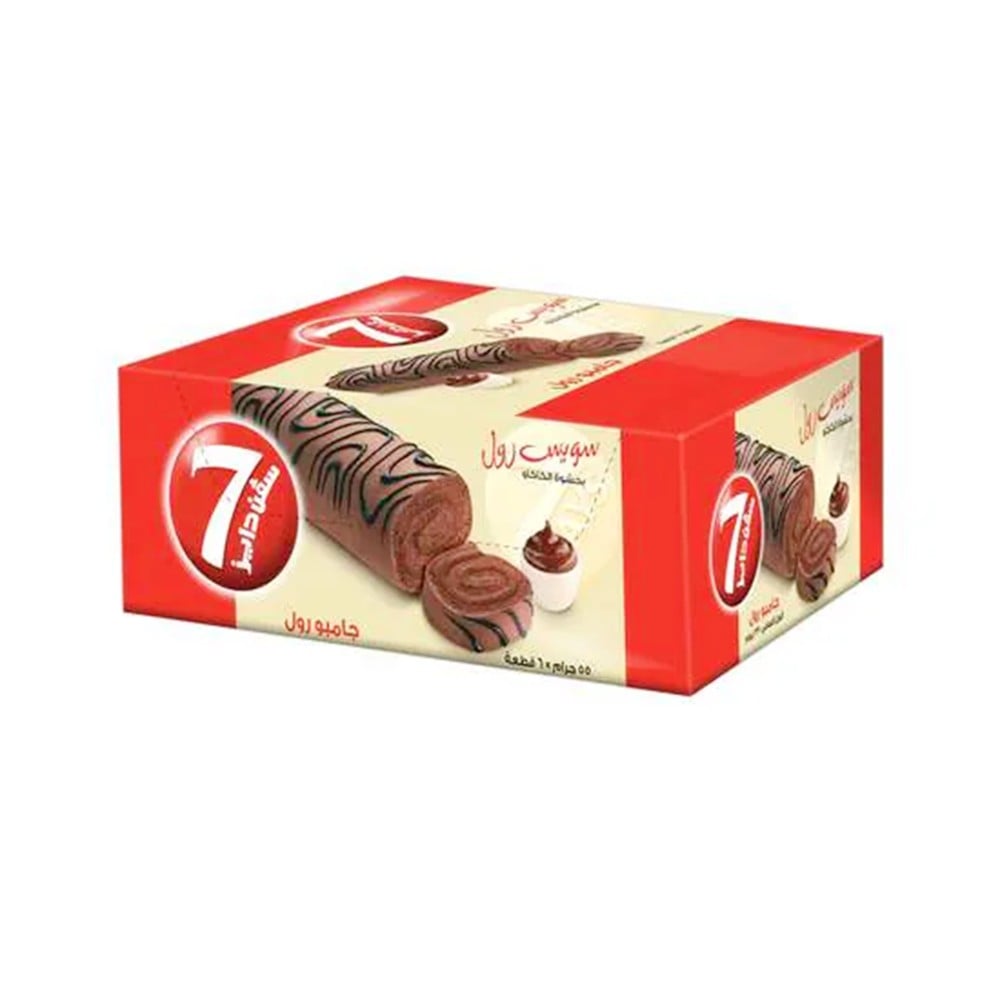 كيك سفن دايز سويس رول 55 جرام بحشوة الكاكو جامبو رول باكت 6 حبات، سويس رول بنكهة الكاكاو لمحبي الشوكولاتة.