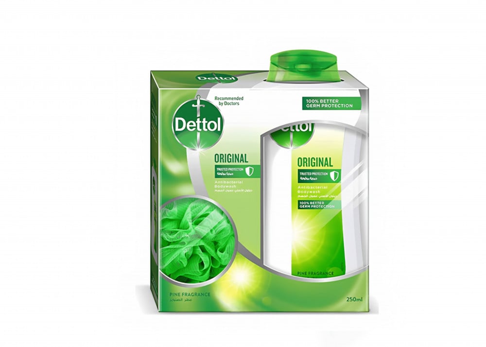 غسول ديتول مع ليفة بوزن 250 ج الأصلي، يعزز نظافة الجسم ويحمي البشرة من الجراثيم.