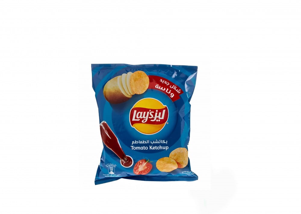 بطاطس ليز كاتشب بوزن 23 جرام، نكهة الكاتشب اللذيذة في كل شريحة، وجبة مثالية للوجبات السريعة.