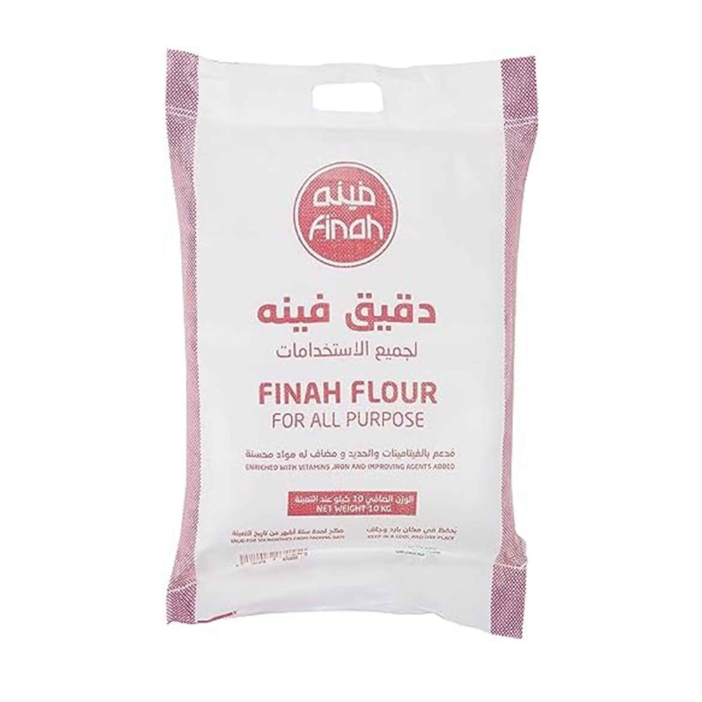 دقيق أبيض فينية بوزن 10 كيلو، دقيق عالي الجودة لتحضير مختلف أنواع المخبوزات.