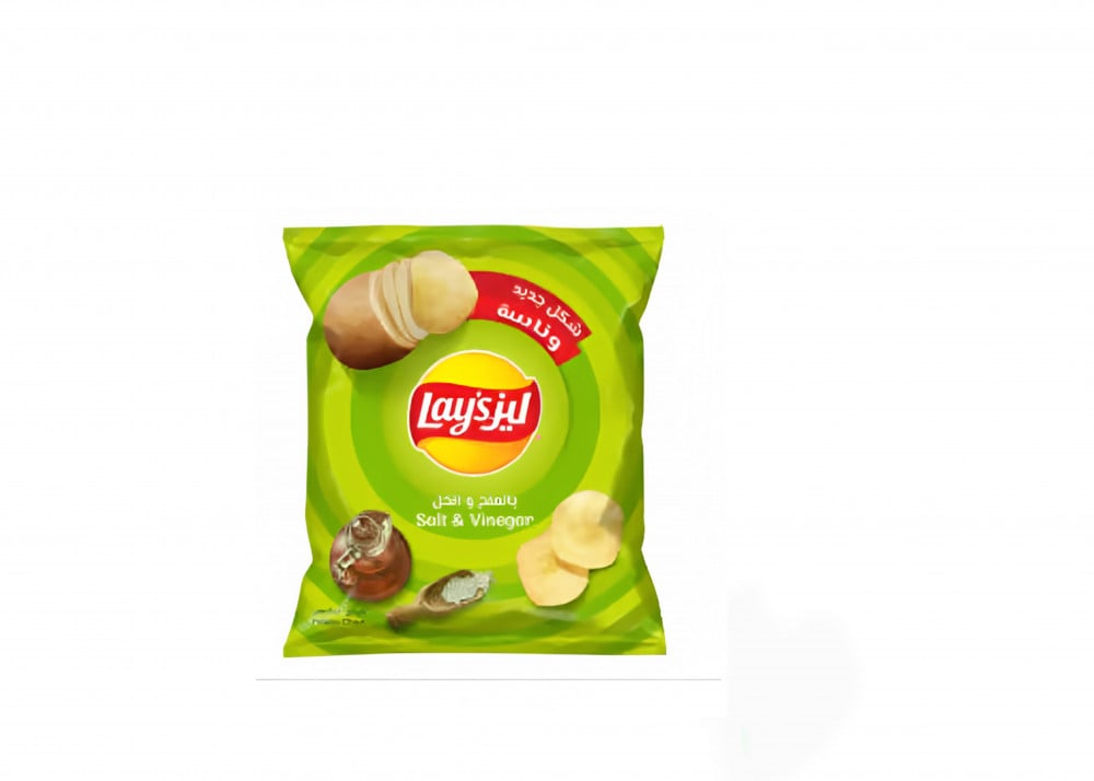 بطاطس ليز ملح وخل بوزن 23 جرام، تمتاز بنكهة ملح وخل لا تقاوم، مناسبة لكل الأوقات.