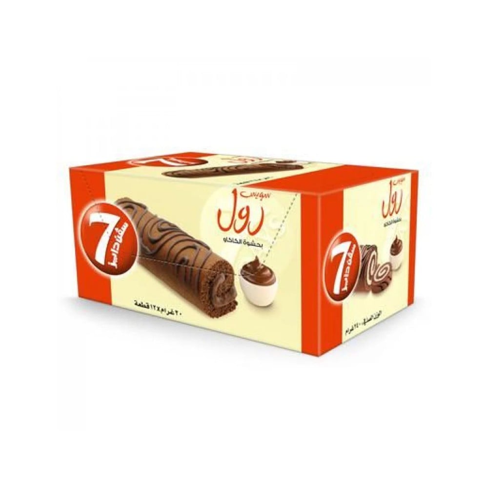 سفن دايز كيك سويس رول 20 جرام بحشوة الكاكو 12 حبه، سويس رول بحشوة الكاكاو في عبوة اقتصادية.